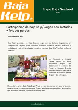 Ignacio Beamonte, administrador de Baja Kelp, informó que, aunque producen distintos productos como tostadas y totopos, en los centros educativos se distribuirán sargazones (similares a los sabritones), productos que tienen registrados desde 1982.