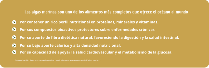 El yodo orgánico que contienen las algas contribuye al metabolismo energético, apoya la actividad normal de la tiroides y favorece las capacidades cognitivas. Interviene en el cuidado y mantenimiento de la piel, es esencial para un desarrollo infantil adecuado y participa en el equilibrio del sistema nervioso.